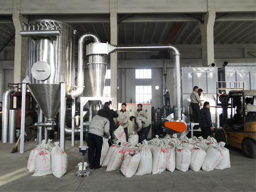 定量喂料系統(tǒng)→粉碎分級(jí)機(jī)→電脈沖除塵收集器→引風(fēng)機(jī)→電器  控制系統(tǒng)