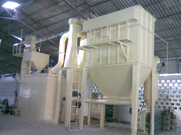 微粉磨全套設(shè)備包括:錘式破碎機(jī)、斗式提升機(jī)、儲料倉、電磁振動給料機(jī)、主機(jī)、選粉機(jī)、擴(kuò)散式雙旋風(fēng)集粉器、脈沖式除塵器、高壓風(fēng)機(jī)、消聲器。